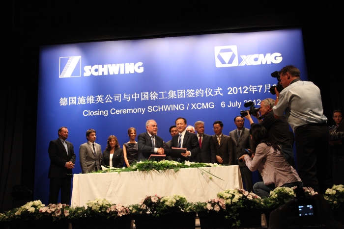 l Under the guidance of the "100 billion yuan, internationalization, and world-class" strategy, XCMG accelerated its global layout. In 2012, it acquired two high-end hydraulic component companies, AMAC in the Netherlands and FT in Germany. The picture shows that in 2012, XCMG acquired German Schwinging AG, a global concrete machinery industry leader. The company has turned losses into profits for many years in a row.